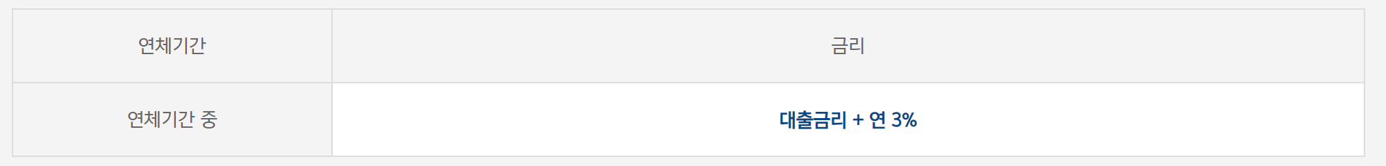 ※ 단, 연체금리의 최고율은 연 15%이며, 대출금리가 연 15% 이상인 경우에는 대출금리 + 연 2%를 적용합니다.