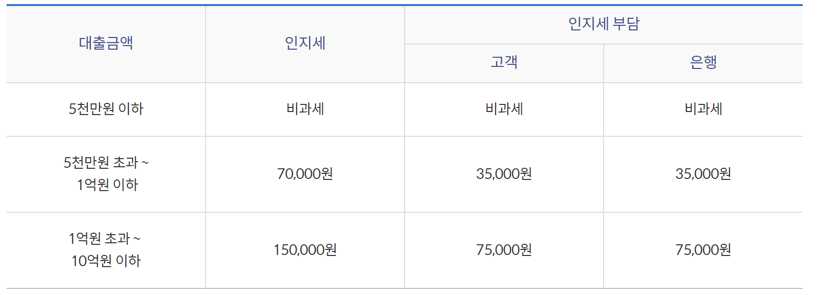 * 인지세(공통) : 인지세법에 의해 대출약정 체결 시 납부하는 세금으로 대출금액에 따라 차등 적용되며, 각 50%씩 고객님과 농협은행이 부담합니다.